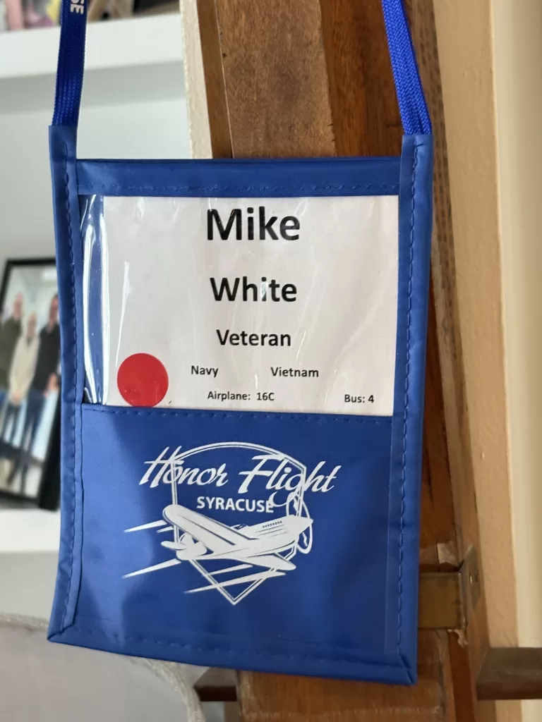 Vietnam veteran Mike White of Elbridge flew Mission 21 in 2024. He passed away on January 15. As a member of the U.S. Navy from 1966-1969, he served on the USS Ticonderoga. His family selected Honor Flight Syracuse to be the recipient of memorial gifts. We are grateful for his service and for these words, shared by e-mail with us, from Mike’s stepdaughter Molly Wallace: